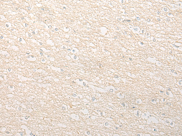 The image is immunohistochemistry of paraffin-embedded Human brain tissue using P13275(POLG Antibody) at dilution 1/20. (Original magnification: ×200) |
