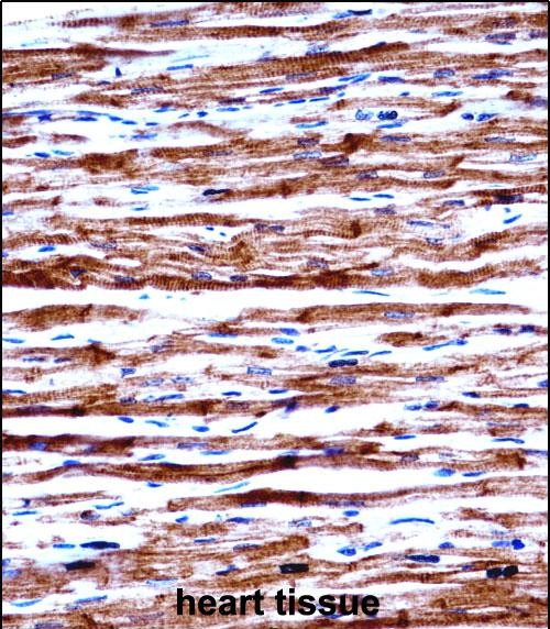 POLR2J Antibody (C-term) (P31429)immunohistochemistry analysis in formalin fixed and paraffin embedded human heart tissue followed by peroxidase conjugation of the secondary antibody and DAB staining.This data demonstrates the use of POLR2J Antibody (C-term) for immunohistochemistry. Clinical relevance has not been evaluated. |