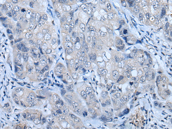 The image is immunohistochemistry of paraffin-embedded Human breast cancer tissue using P05940(POMC Antibody) at dilution 1/20. (Original magnification: ×200) |
