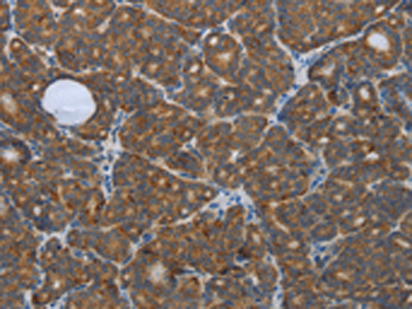 The image is immunohistochemistry of paraffin-embedded Human thyroid cancer tissue using P11320(PPARG Antibody) at dilution 1/20. (Original magnification: ×200) |