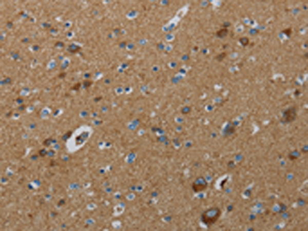 The image is immunohistochemistry of paraffin-embedded Human brain tissue using P12046(PPARGC1B Antibody) at dilution 1/30. (Original magnification: ×200) |