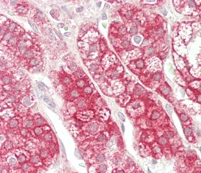 Formalin-fixed and paraffin-embedded H.adrenal tissue tissue reacted with PPFIBP1 Antibody (Center) (Cat#P33536). |