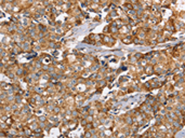 The image is immunohistochemistry of paraffin-embedded Human breast cancer tissue using P12074(PPOX Antibody) at dilution 1/40. (Original magnification: ×200) |