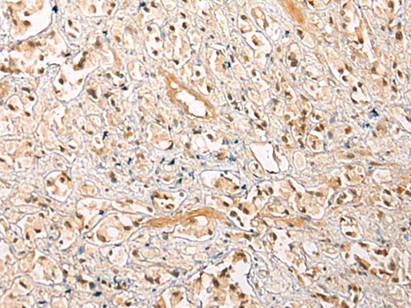 The image is immunohistochemistry of paraffin-embedded Human prostate cancer tissue using P04672(PPP1R13B Antibody) at dilution 1/20. (Original magnification: ×200) |