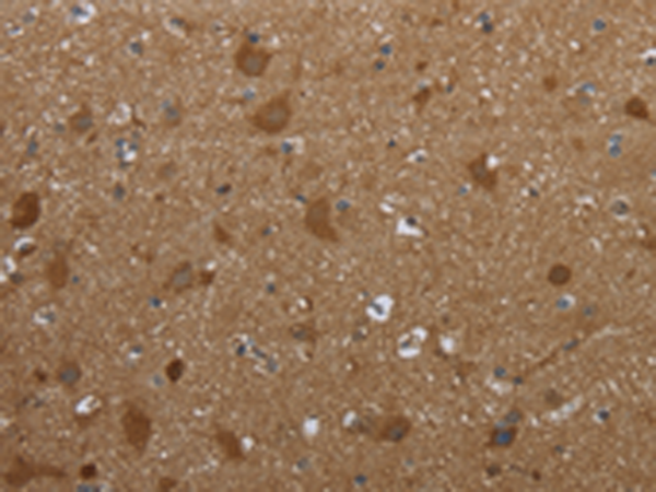 The image is immunohistochemistry of paraffin-embedded Human brain tissue using P04040(PPP1R13L Antibody) at dilution 1/30. (Original magnification: ×200) |
