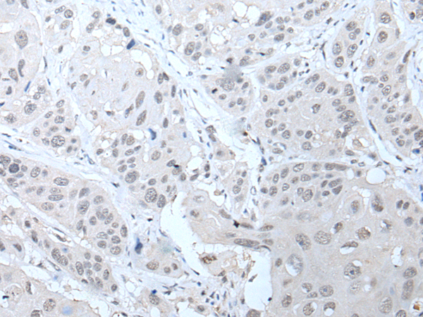 The image is immunohistochemistry of paraffin-embedded Human thyroid cancer tissue using P12779(PPP1R42 Antibody) at dilution 1/20. (Original magnification: ×200) |