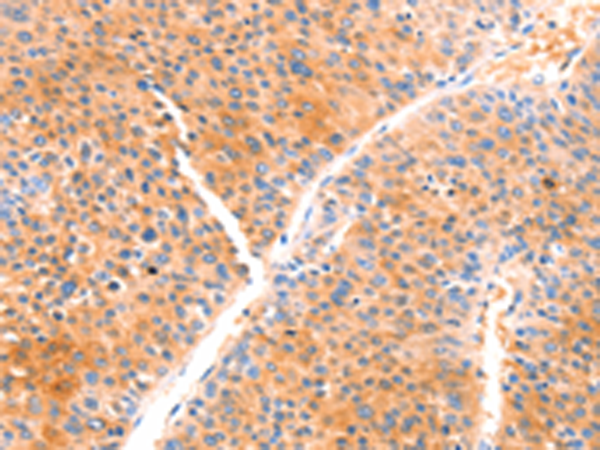 The image is immunohistochemistry of paraffin-embedded Human liver cancer tissue using P11099(PRDX2 Antibody) at dilution 1/80. (Original magnification: ×200) |