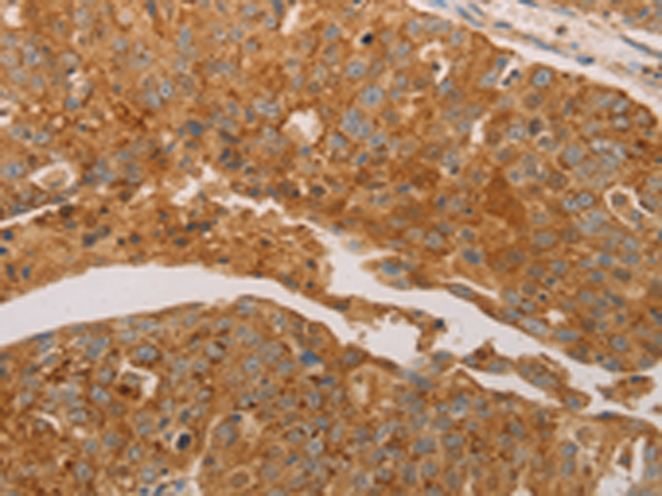 The image is immunohistochemistry of paraffin-embedded Human liver cancer tissue using P04184(PRDX3 Antibody) at dilution 1/50. (Original magnification: ×200) |