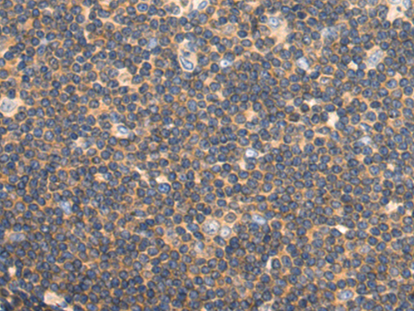 The image is immunohistochemistry of paraffin-embedded Human tonsil tissue using P13787(PRKACB Antibody) at dilution 1/50. (Original magnification: ×200) |