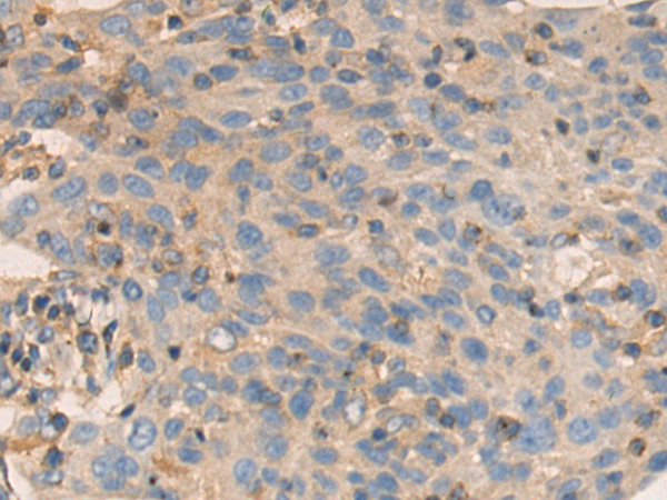 The image is immunohistochemistry of paraffin-embedded Human cervical cancer tissue using P13787(PRKACB Antibody) at dilution 1/50. (Original magnification: ×200) |