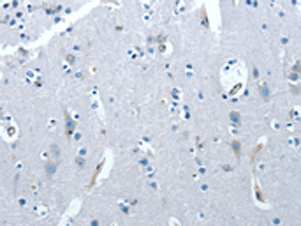 The image is immunohistochemistry of paraffin-embedded Human brain tissue using P11229(PRKX Antibody) at dilution 1/20. (Original magnification: ×200) |