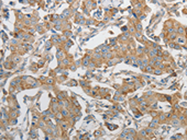 The image is immunohistochemistry of paraffin-embedded Human breast cancer tissue using P04181(PRMT5 Antibody) at dilution 1/20. (Original magnification: ×200) |