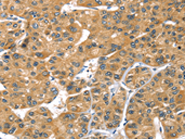 The image is immunohistochemistry of paraffin-embedded Human liver cancer tissue using P12337(PRSS50 Antibody) at dilution 1/30. (Original magnification: ×200) |