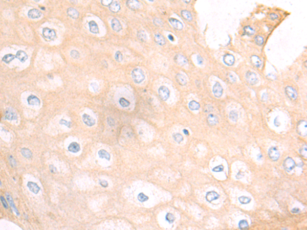 The image is immunohistochemistry of paraffin-embedded Human esophagus cancer tissue using P11323(PSCA Antibody) at dilution 1/50. (Original magnification: ×200) |