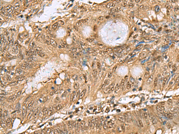 The image is immunohistochemistry of paraffin-embedded Human colorectal cancer tissue using P03330(PSMA6 Antibody) at dilution 1/65. (Original magnification: ×200) |