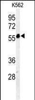 Western blot analysis of PSMAL Antibody (Center) (Cat. #P32779) in K562 cell line lysates (35ug/lane).PSMAL (arrow) was detected using the purified Pab. |