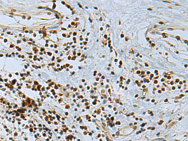 The image is immunohistochemistry of paraffin-embedded Human breast cancer tissue using P02882(PSMB10 Antibody) at dilution 1/100. (Original magnification: ×200) |