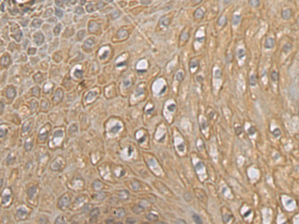 The image is immunohistochemistry of paraffin-embedded Human esophagus cancer tissue using P02882(PSMB10 Antibody) at dilution 1/100. (Original magnification: ×200) |