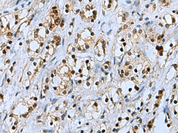 The image is immunohistochemistry of paraffin-embedded Human prostate cancer tissue using P02857(PSMB3 Antibody) at dilution 1/150. (Original magnification: ×200) |