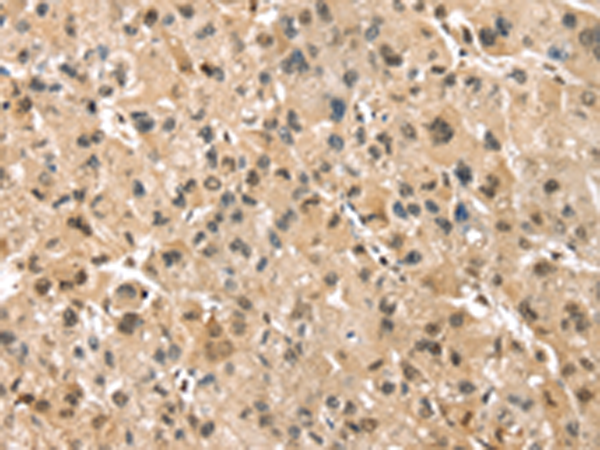The image is immunohistochemistry of paraffin-embedded Human liver cancer tissue using P11908(PSMB8 Antibody) at dilution 1/30. (Original magnification: ×200) |