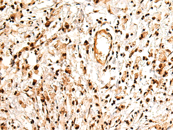 The image is immunohistochemistry of paraffin-embedded Human gastric cancer tissue using P03553(PTBP2 Antibody) at dilution 1/125. (Original magnification: ×200) |