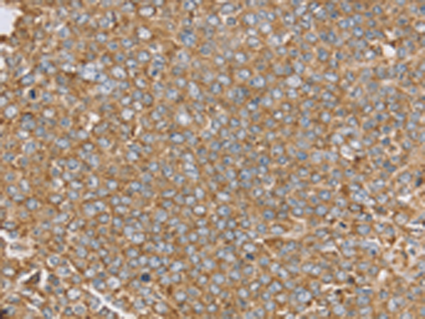 The image is immunohistochemistry of paraffin-embedded Human ovarian cancer tissue using P12076(PTGER2 Antibody) at dilution 1/45. (Original magnification: ×200) |