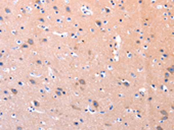 The image is immunohistochemistry of paraffin-embedded Human brain tissue using P03911(PTK2 Antibody) at dilution 1/75. (Original magnification: ×200) |