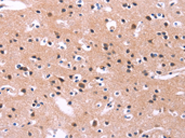 The image is immunohistochemistry of paraffin-embedded Human brain tissue using P11757(PTPN13 Antibody) at dilution 1/20. (Original magnification: ×200) |