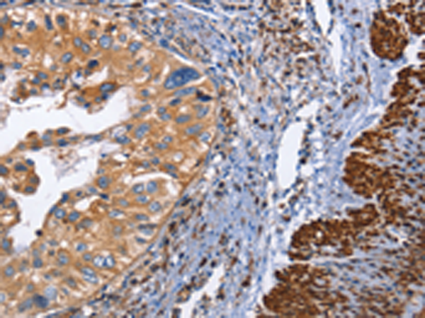 The image is immunohistochemistry of paraffin-embedded Human cervical cancer tissue using P11642(PTPRC Antibody) at dilution 1/60. (Original magnification: ×200) |
