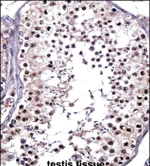 PTPRE Antibody (N-term) (P31464)immunohistochemistry analysis in formalin fixed and paraffin embedded human testis tissue followed by peroxidase conjugation of the secondary antibody and DAB staining.This data demonstrates the use of PTPRE Antibody (N-term) for immunohistochemistry. Clinical relevance has not been evaluated. |
