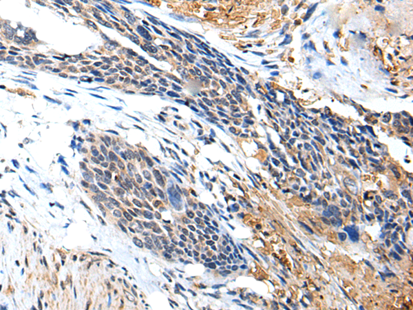 The image is immunohistochemistry of paraffin-embedded Human cervical cancer tissue using P05814(PTPRG Antibody) at dilution 1/20. (Original magnification: ×200) |