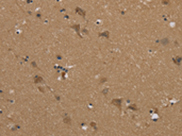 The image is immunohistochemistry of paraffin-embedded Human brain tissue using P05198(PUS10 Antibody) at dilution 1/45. (Original magnification: ×200) |