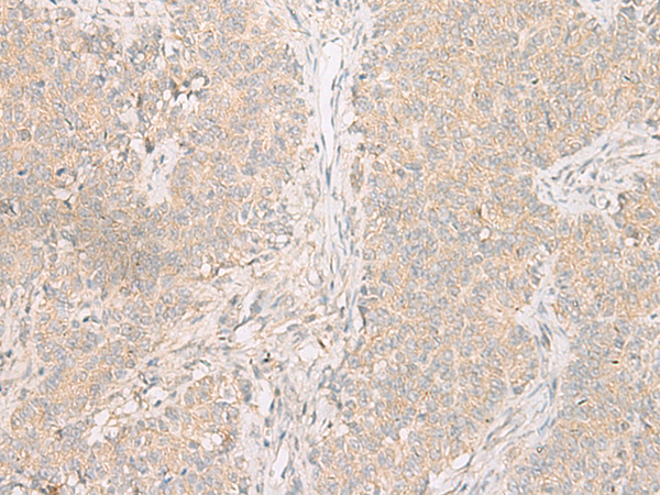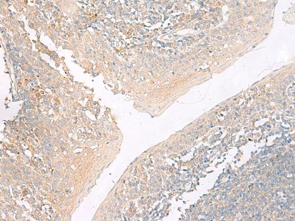 The image is immunohistochemistry of paraffin-embedded Human ovarian cancer tissue using P04165(PXN Antibody) at dilution 1/20. (Original magnification: ×200) |