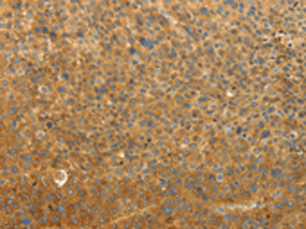 The image is immunohistochemistry of paraffin-embedded Human liver cancer tissue using P03726(RAB35 Antibody) at dilution 1/50. (Original magnification: ×200) |
