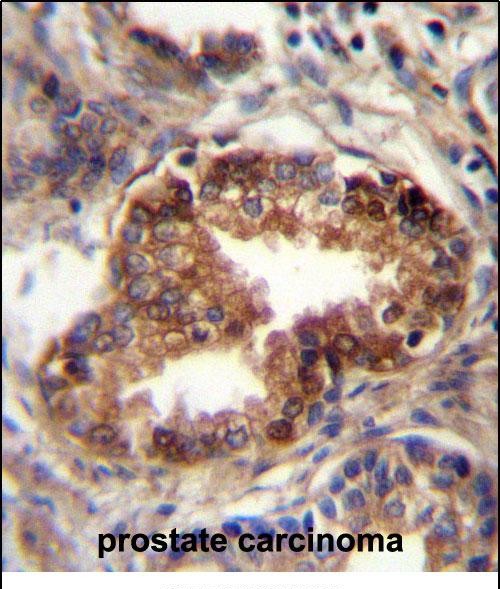 RAB3D Antibody (C-term) (Cat. #P31242)immunohistochemistry analysis in formalin fixed and paraffin embedded human prostate carcinoma followed by peroxidase conjugation of the secondary antibody and DAB staining.This data demonstrates the use of RAB3D Antibody (C-term) for immunohistochemistry. Clinical relevance has not been evaluated. |