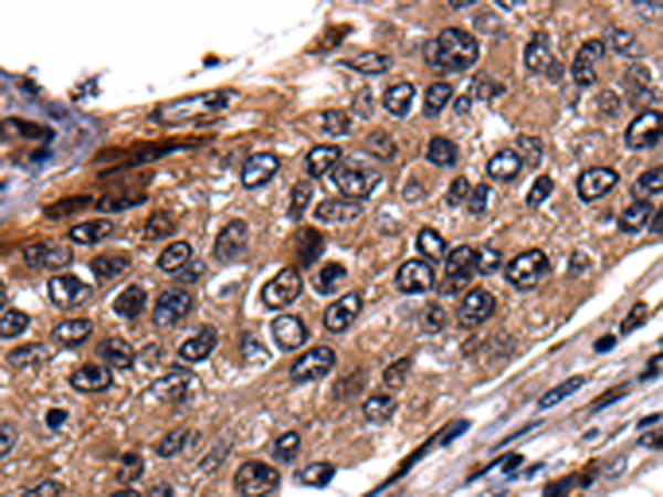 The image is immunohistochemistry of paraffin-embedded Human cervical cancer tissue using P03729(RAB41 Antibody) at dilution 1/100. (Original magnification: ×200) |