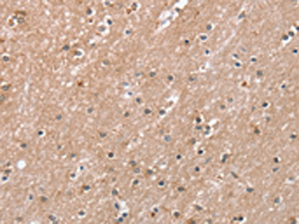 The image is immunohistochemistry of paraffin-embedded Human brain tissue using P05199(RAB8A Antibody) at dilution 1/45. (Original magnification: ×200) |