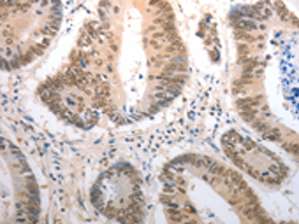 The image is immunohistochemistry of paraffin-embedded Human colon cancer tissue using P04189(RAD50 Antibody) at dilution 1/40. (Original magnification: ×200) |