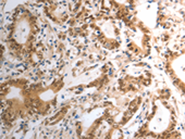 The image is immunohistochemistry of paraffin-embedded Human gastric cancer tissue using P04189(RAD50 Antibody) at dilution 1/40. (Original magnification: ×200) |