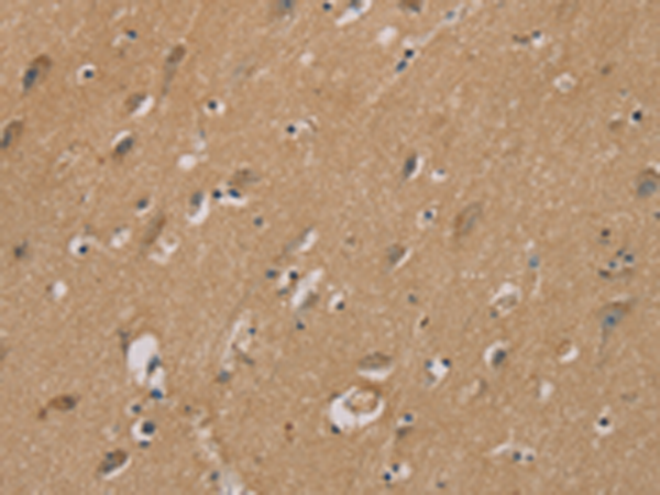 The image is immunohistochemistry of paraffin-embedded Human brain tissue using P12093(RAD51 Antibody) at dilution 1/40. (Original magnification: ×200) |