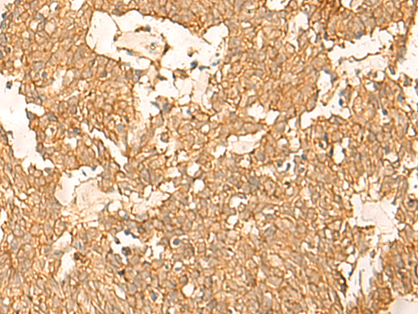 The image is immunohistochemistry of paraffin-embedded Human lung cancer tissue using P04188(RAD52 Antibody) at dilution 1/20. (Original magnification: ×200) |