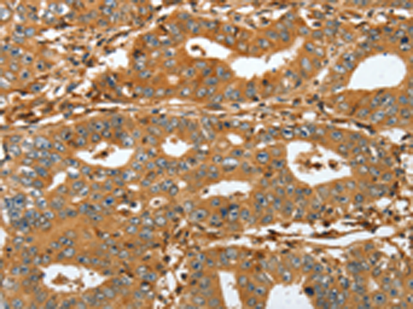 The image is immunohistochemistry of paraffin-embedded Human gastric cancer tissue using P07108(RAP1A Antibody) at dilution 1/45. (Original magnification: ×200) |