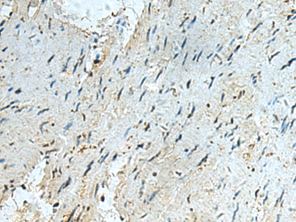 The image is immunohistochemistry of paraffin-embedded Human gastric cancer tissue using P03397(RAPSN Antibody) at dilution 1/40. (Original magnification: ×200) |