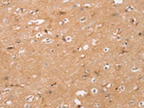 The image is immunohistochemistry of paraffin-embedded Human brain tissue using P12097(RASA3 Antibody) at dilution 1/35. (Original magnification: ×200) |