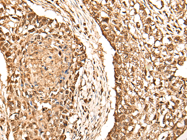 The image is immunohistochemistry of paraffin-embedded Human lung cancer tissue using P04620(RBL2 Antibody) at dilution 1/40. (Original magnification: ×200) |