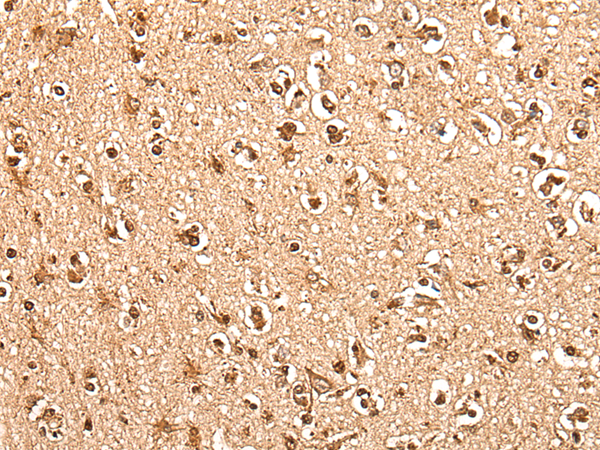 The image is immunohistochemistry of paraffin-embedded Human brain tissue using P04620(RBL2 Antibody) at dilution 1/40. (Original magnification: ×200) |