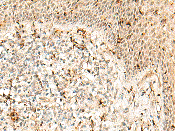The image is immunohistochemistry of paraffin-embedded Human tonsil tissue using P02959(RBM15 Antibody) at dilution 1/50. (Original magnification: ×200) |