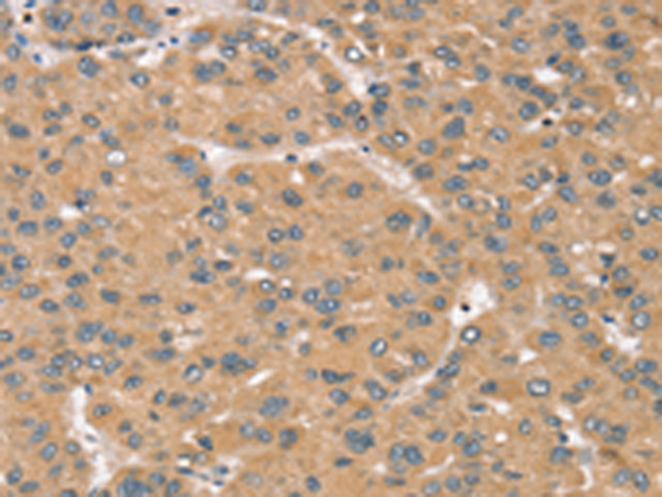 The image is immunohistochemistry of paraffin-embedded Human liver cancer tissue using P12099(RBM38 Antibody) at dilution 1/45. (Original magnification: ×200) |
