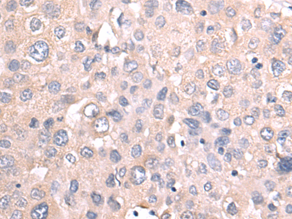 The image is immunohistochemistry of paraffin-embedded Human liver cancer tissue using P05214(RBM38 Antibody) at dilution 1/50. (Original magnification: ×200) |