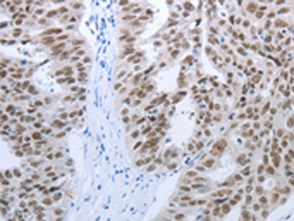 The image is immunohistochemistry of paraffin-embedded Human ovarian cancer tissue using P11104(RBMS1 Antibody) at dilution 1/30. (Original magnification: ×200) |